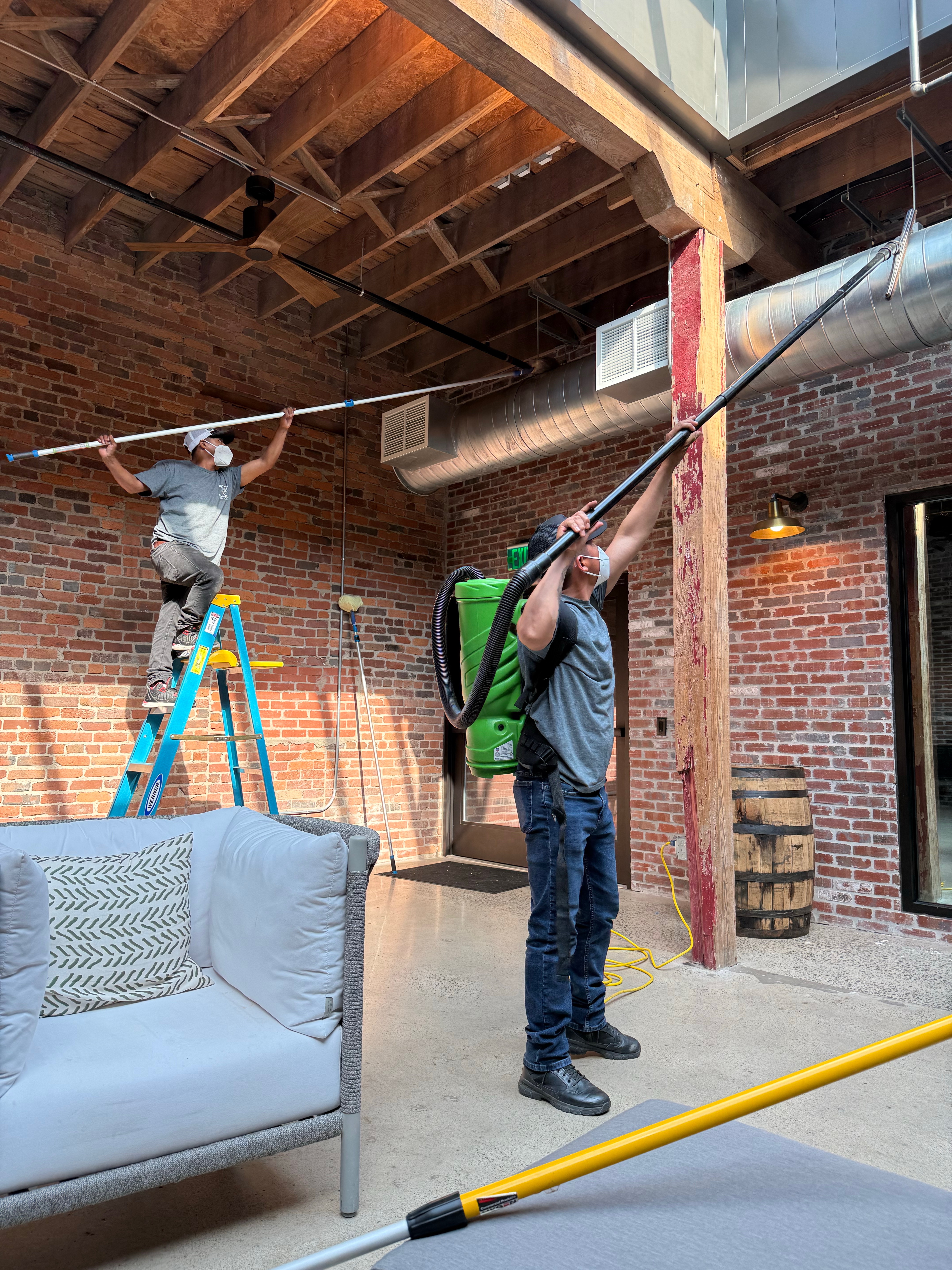 Our high dusting services target hard-to-reach areas where dust and debris build up over time—vents, ceiling beams, light fixtures, and ductwork.